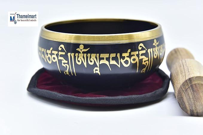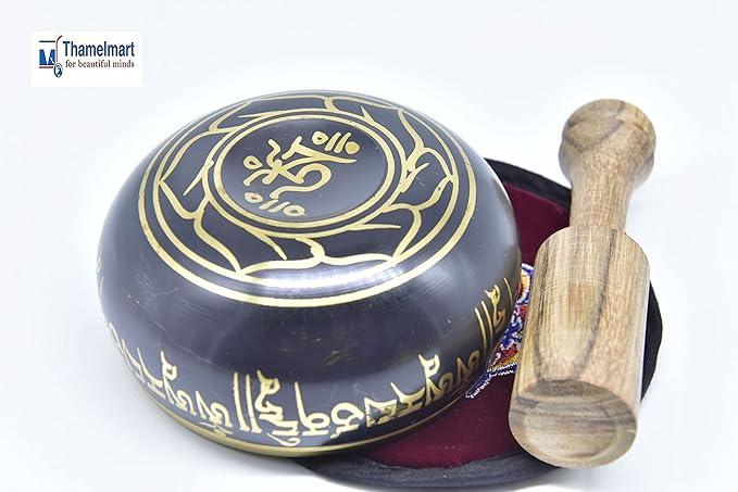 4" TIBETAN MEDITATION OM MANI PADME HUM PEACE SINGING BOWL: This 4-inch Tibetan Meditation Singing Bowl comes with carved ‘Om Mani Padme Hum’ on its surroundings. This mantra is famous for bringing peace and compassion. You've to rub this singing bowl with the mallet to produce a deep, harmonic sound. This beautiful bowl is perfect for meditation and yoga purposes.