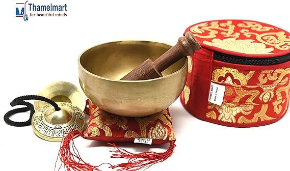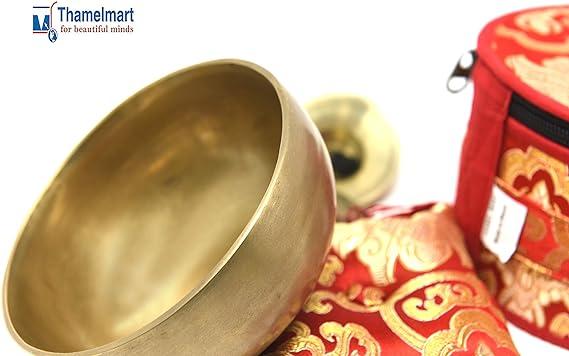 HAND-PAINTED BY ARTISTS at Thamelmart Design with the most detailed art you have ever seen on any Tibetan singing bowl set; Crafted to perfection for an emotionally calming, healing and long lasting ambient sound