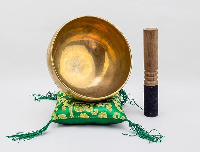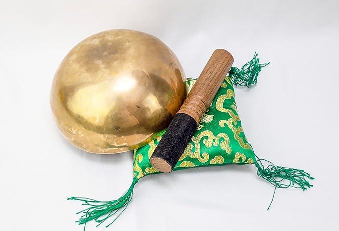 WHAT'S INCLUDED: The main characteristics of this singing bowl are its lightweight nature and portable design; it is ideal for anyone. It has a diameter of 3.75 inches. And is 2.25 inches tall. It weighs around 340 grams. This includes a 6" meditation bowl. A large wooden mallet. And a green-colored hand-sewn silk cushion.