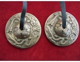 These Tingsha bells (hand cymbal) decorated with embossed Tibetan dragon. The dragon embodies power, goodness, and the spirit of change or transformation. Good to use when energy required for clearing and balance.