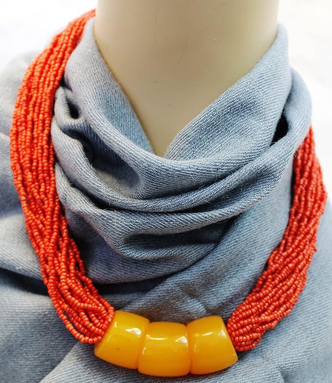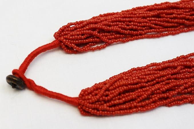 ETHNIC RED GLASS BEADS WITH HUGE AMBER BALL TIBETAN GYPSY NECKLACE: This piece of Tibetan necklace with the red glass beads, including a huge amber ball, is a very attractive and stunning necklace. This beautiful piece combines bold red beads, which are made of glass. And these beads are threaded in a very interesting and skillful manner to make the piece more attractive. The large amber ball at the center makes it more detailed and helps the necklace showcase the beautiful cultural heritage of Tibetan and Gypsy craftsmanship.