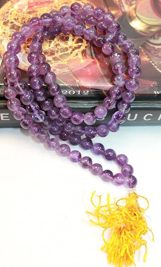 MATERIAL QUALITY: This handmade Tibetan Japa mala is made from high-quality amethyst glass. This glass is known for its reliability, durability, and aestheticity. Each bead is smooth and has a complete finish which reflects the dedicated craftsmanship of Nepalese artists. This mala will last for many years.