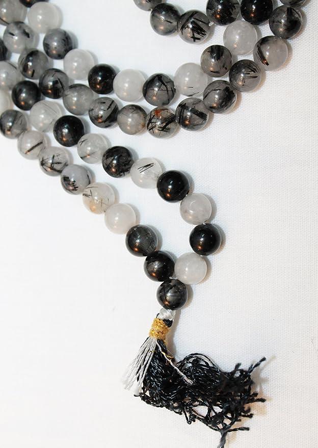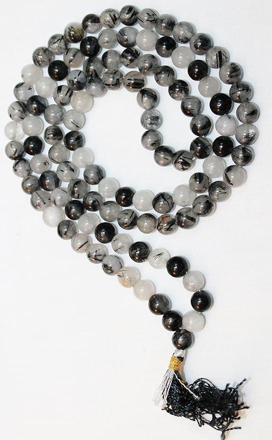 F682 Handmade Tibetan Black Rainbow Glass Beads 108 Japa Mala for Meditation, Yoga 8mm Beads