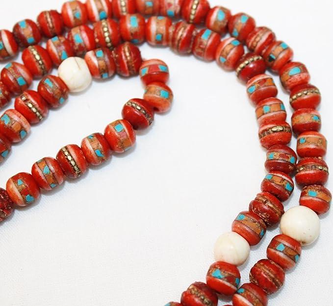 F685 Handmade Tibetan Bone Beads 108 japa mala for Meditation, Yoga 8mm Beads
