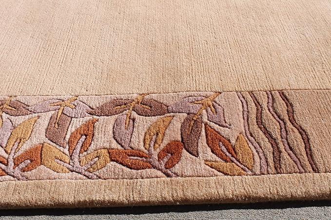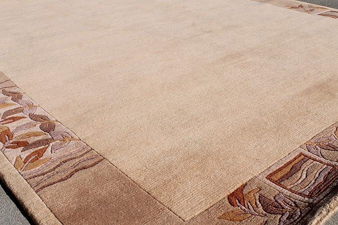 Thamel Mart USA R4370 Gorgeous Custom Made Light Beige Colored Hand Made Tibetan Woolen Area Rug 5.7 Feet X 7.10 Feet Made in Nepal