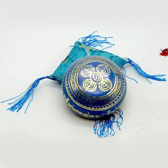 INCLUDED ITEMS: This singing bowl comes up in a shiny blue color giving it an appealing look. 3.75 inches across and 3 inches tall. And weighs around 200-340 grams. Comes with a wooden mallet, a hand-fitted singing bowl, and a silk cushion to enhance your spiritual journey.