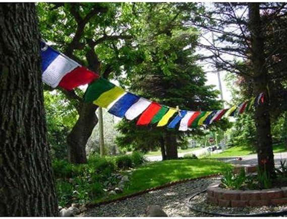 WHAT'S INCLUDED: Comes with 5 sets of medium-sized prayer flags. Contains a total of 50 flags including designs, prayers, and mantras. It is a very auspicious flag treated as a religious item in Tibetan Buddhism.