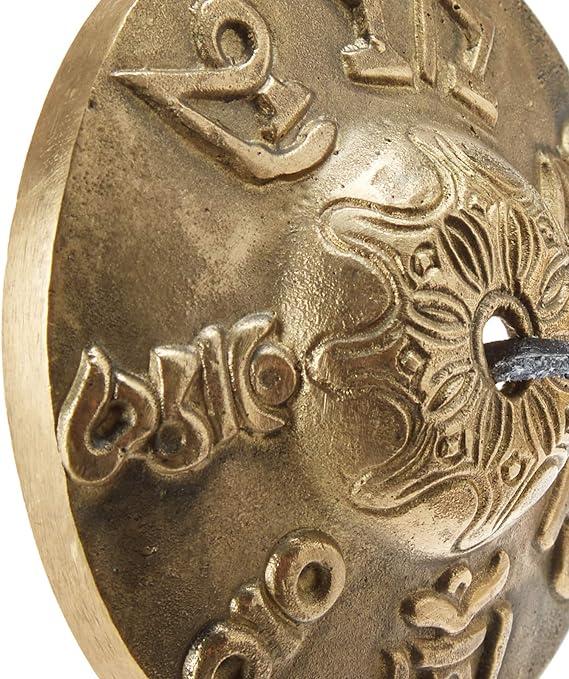 TIBETAN TINGSHA CYMBALS: These are a beautifully designed pair of cymbals artistically made in Nepal. These cymbals feature the holy mantra "Om Mane Padme Hum," symbolizing kindness, knowledge, and understanding, along with a detailed floral pattern at the center, reflecting the rich cultural heritage of Tibetan artistry. Made of premium-quality brass, these drums provide a rich, resonant tone. They are beautiful-looking and offer greater utility for sound healing, yoga, and meditation.