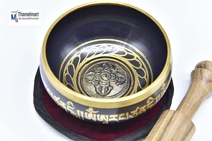 4" TIBETAN MEDITATION OM MANI PADME HUM PEACE SINGING BOWL: This 4-inch Tibetan Meditation Singing Bowl comes with carved ‘Om Mani Padme Hum’ on its surroundings. This mantra is famous for bringing peace and compassion. You've to rub this singing bowl with the mallet to produce a deep, harmonic sound. This beautiful bowl is perfect for meditation and yoga purposes.