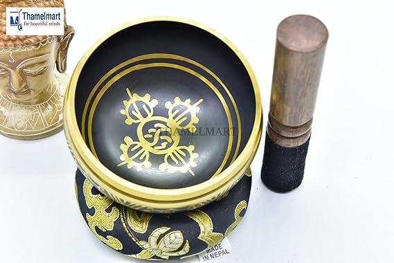 INCLUDED ITEMS:The set includes an elegant-looking singing bowl with an eye-catching design. You'll also receive a mallet and a dark-colored silk cushion for creating a peaceful sound. If you don't find this product helpful we offer a 30-day complete refund along with a 1-year replacement policy.