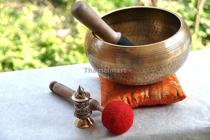 HANDMADE BY SKILLED ARTISANS:Skilled craftspeople with loads of experience have created this Tibetan singing bowl. It was perfectly made by professional hands so that while listening to its sounds or meditating on this bowl one may believe his mind and soul are being calmed and healed.