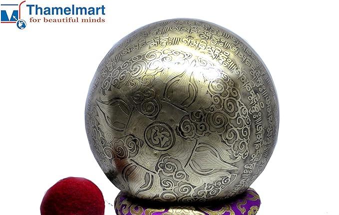 MULTIPLE USES: You can bring inner peace and spirituality into your life by using this handmade Tibetan singing bowl. It generates a clean and clear sound that is peaceful to the ears. One can use the singing bowl for stress relaxation, balancing chakras, and so on. The mantra carved on the bowl enhances the bowl's beauty and also serves as a reminder for you during the meditation session.