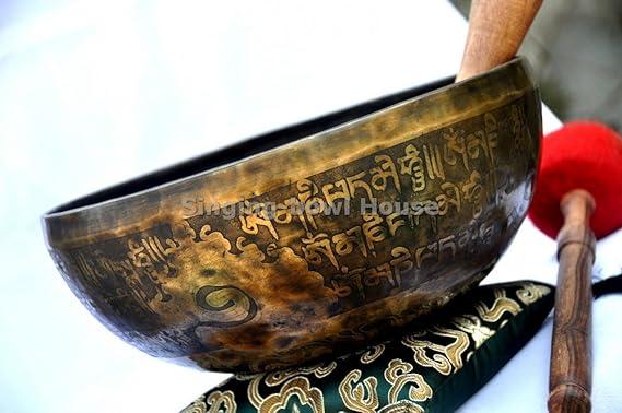9.5-INCH MANTRA CARVED B CHAKRA TIBETAN MEDITATION SINGING BOWL: This gorgeous singing bowl includes mantra carvings that show an element of spiritual significance. B chakra is referred to as the Crown Chakra for enhancing spirituality, intuition, and creativity. The rich, deep, and humming sound of it provides a total relaxing experience. This mantra-carved bowl features an eye-catching design and a harmonic, long-lasting sound; giving you overall wellness.
