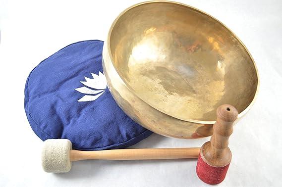 This is a handcrafted bowl thereby please be aware that the measurements may be different for each singing bowl that you see in the picture attached below. Diameter: 12 inches Height: 5.25 inches Weight: Approx 6.4 lbs Sound Quality: The making of bowls requires a great deal of care and attention. It has been hammered and formed with human hands in order to achieve uniquely rich and long-lasting tones in it. The entire process is complex and contributes to the bowl’s final form. Craftsmanship:Our handmade bowls are made by talented artisans. They have years of expertise in the field of metalworking. They use a special alloy made of seven metals using proper hand-hammering techniques. Material: Created by combining seven metals also known as alloys such as gold, silver, mercury, copper, iron, tin, and lead.