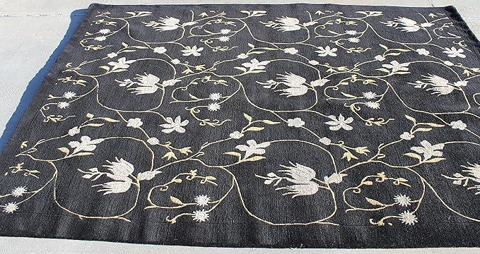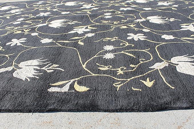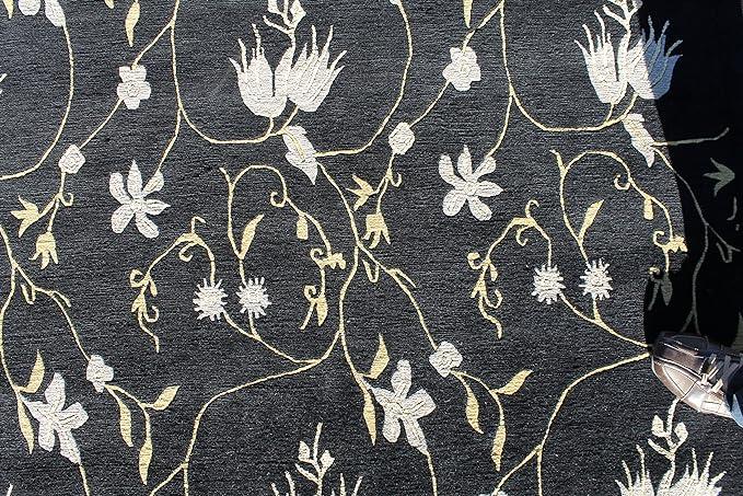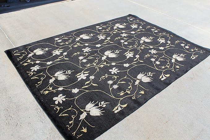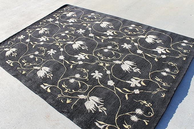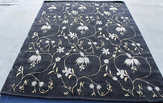 GORGEOUS BLACK-COLORED TIBETAN WOOLEN AREA RUG: This is a handwoven rug all of the ways from Nepal using cool traditional Tibetan techniques, and the layout is fabulous. Measuring 5.8' X 8', this rug with an outstanding dense weave - 100 knots in line per square inch is fantastically great. It is colored with black dyes that will stay for a long time, and it is easy to clean. It is the perfect centerpiece for any room. Each rug is like a painting of art, through skilled artisans.