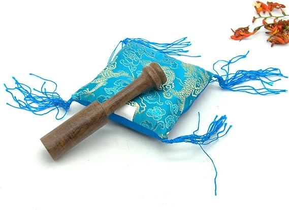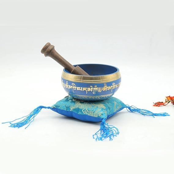 INCLUDED ITEMS: This singing bowl comes up in a shiny blue color giving it an appealing look. 3.75 inches across and 3 inches tall. And weighs around 200-340 grams. Comes with a wooden mallet, a hand-fitted singing bowl, and a silk cushion to enhance your spiritual journey.